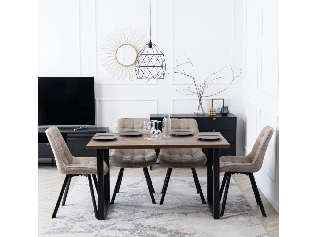 Der Stuhlrahmen besteht aus robustem Metall, genauer gesagt aus schwarzem Stahl mit Pulverbeschichtung, die sowohl Stabilität als auch ein modernes Erscheinungsbild gewährleistet. Die Konstruktion ist auf eine maximale Belastung von 120 kg ausgelegt und vereint Ästhetik mit Praktikabilität.