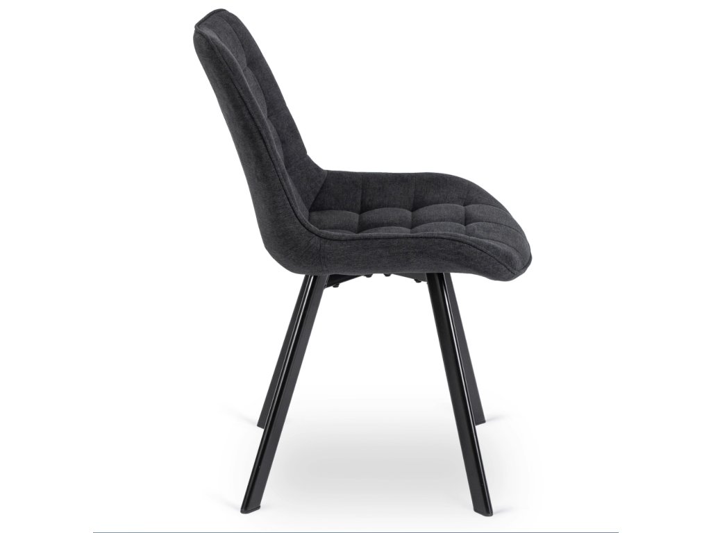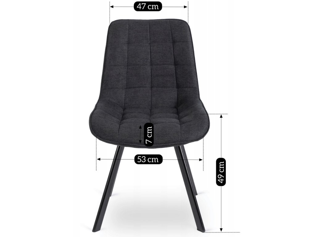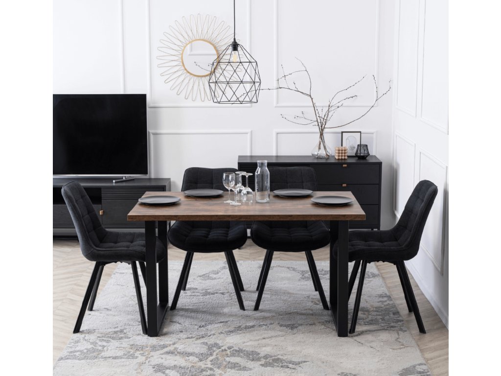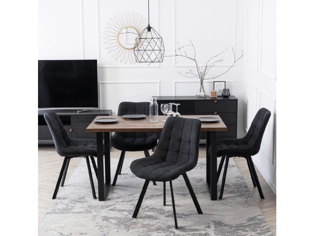 Der Stuhlrahmen besteht aus robustem Metall, genauer gesagt aus schwarzem Stahl mit Pulverbeschichtung, die sowohl Stabilität und Festigkeit gewährleistet als auch für ein modernes Erscheinungsbild sorgt. Die Konstruktion ist auf eine maximale Belastung von bis zu 120 kg ausgelegt und verbindet Ästhetik mit Praktikabilität.