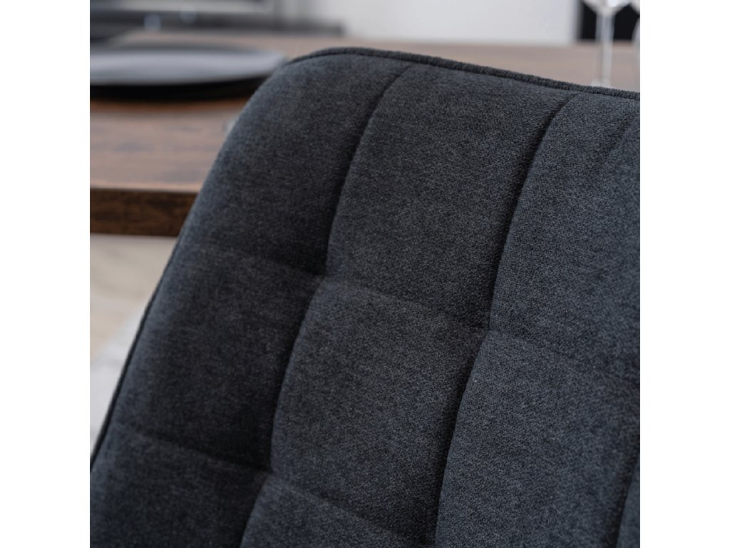 Der Esszimmerstuhl Rick besteht aus erstklassigem Material und weichem Stoff, der nicht nur angenehm anzufassen ist, sondern auch besonders widerstandsfähig gegen den täglichen Gebrauch. Das luxuriöse Material wird durch stilvolle Steppnähte ergänzt, die seine Eleganz unterstreichen. Sitzfläche und Rückenlehne sind mit weichem Schaum gepolstert, der maximalen Komfort beim Sitzen bietet, auch bei langen Mahlzeiten am Esstisch.